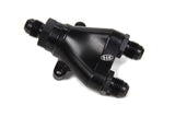 Fitting - Y Block - 6 AN Male Inlet - Dual 6 AN Male Outlets - Aluminum - Black Anodized - Each